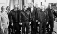 Gutes Klima beim ersten Gespräch der Brandschützer (u.a. Günter Friedrich, 3.v.l.), und Michael Böcker, (5.v.l., aus OB) mit MdL Horst Engel (l.) und Innenminister Dr. Ingo Wolf (7.v.l.). |