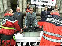 Symbolischer Protest: In zwei Kisten gaben Feuerwehrleute